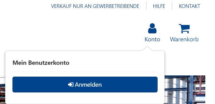 In diesem Fall können Sie über den Button Konto auf die Login Maske gelangen.